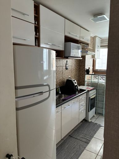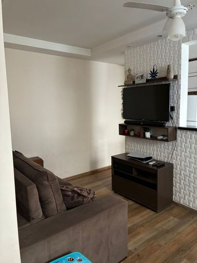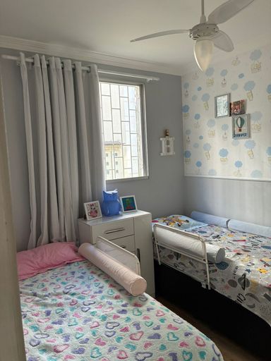 Apartamento em condomínio fechado, no Jockey Club, com sala, 2 quartos, banheiro, cozinha, área de serviço.