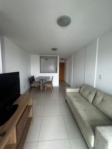 Apartamento com sala, 2 quartos, 2 banheiros, cozinha, área de serviço, garagem para 1 carro.
