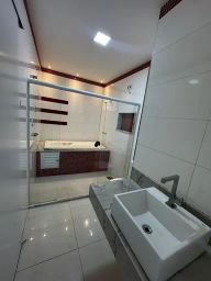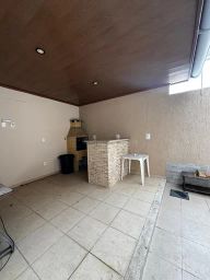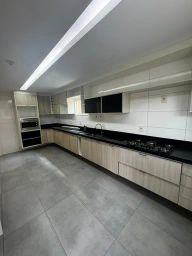 Pavimento no térreo: Sala 2 ambientes, escritório, lavabo, cozinha ampla com armários, forno e cooktop, área de serviço, área gourmet com churrasqueira, ( 1 quarto para guardados e banheiro), quintal amplo.