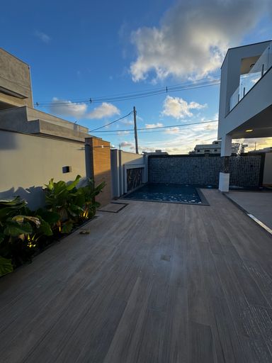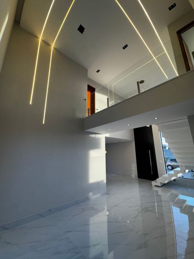 sala ampla com 3 ambientes, 1 quarto ou escritório, banheiro cozinha, área de serviço, depósito, área gourmet completa com piscina . Na parte superior , 3 suítes com sacada, sendo 1 master com closet. Varanda e mezanino.